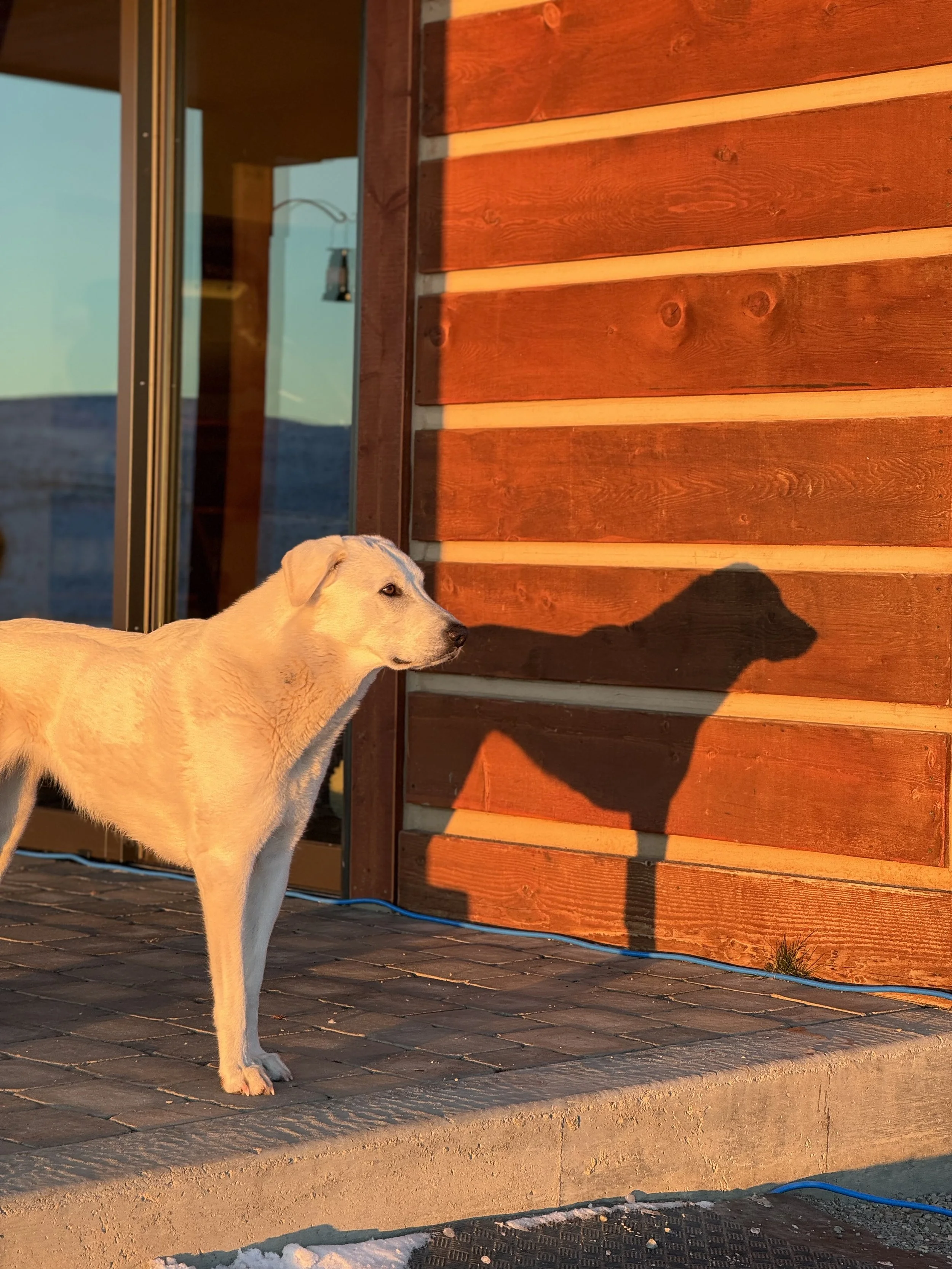 Cassie was one of 50+ dogs we rescued from the so-called “farm” in Buhl, Idaho. Broken literally, her front leg was fractured in 3 places by the owner of the farm. When rescued, Cassie was pregnant and gave birth at Unega-deep under a shed during a snowstorm! Cassie is an incredible guardian roaming the pasture at first call and having amazing instincts for danger. After years of never walking into a home, sleeping through negative temperatures, and wild winds, Cassie now sleeps inside at night with the rest of her pack and rises early to join her crew for morning protection duties! She is now accepting of touch and overall a daring.